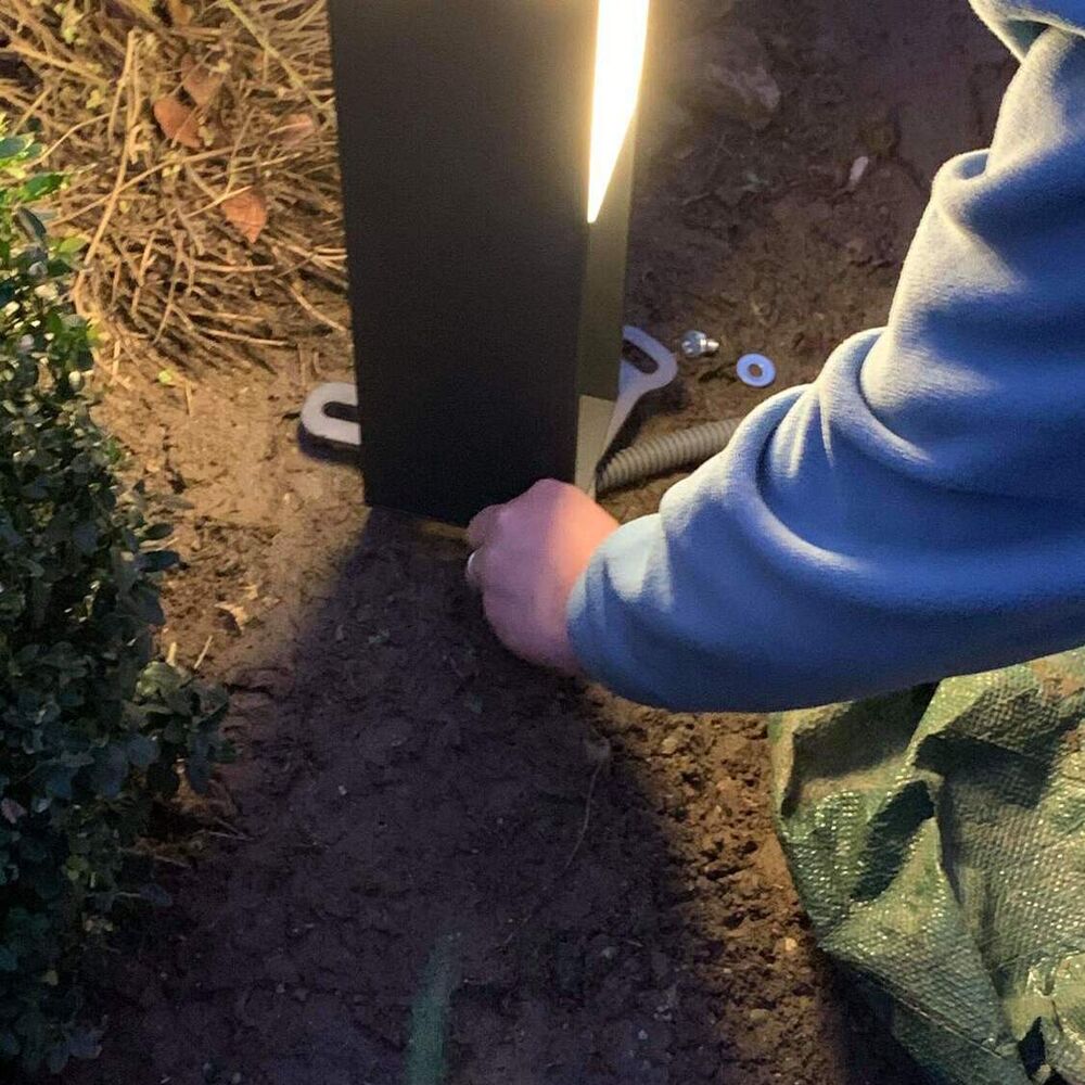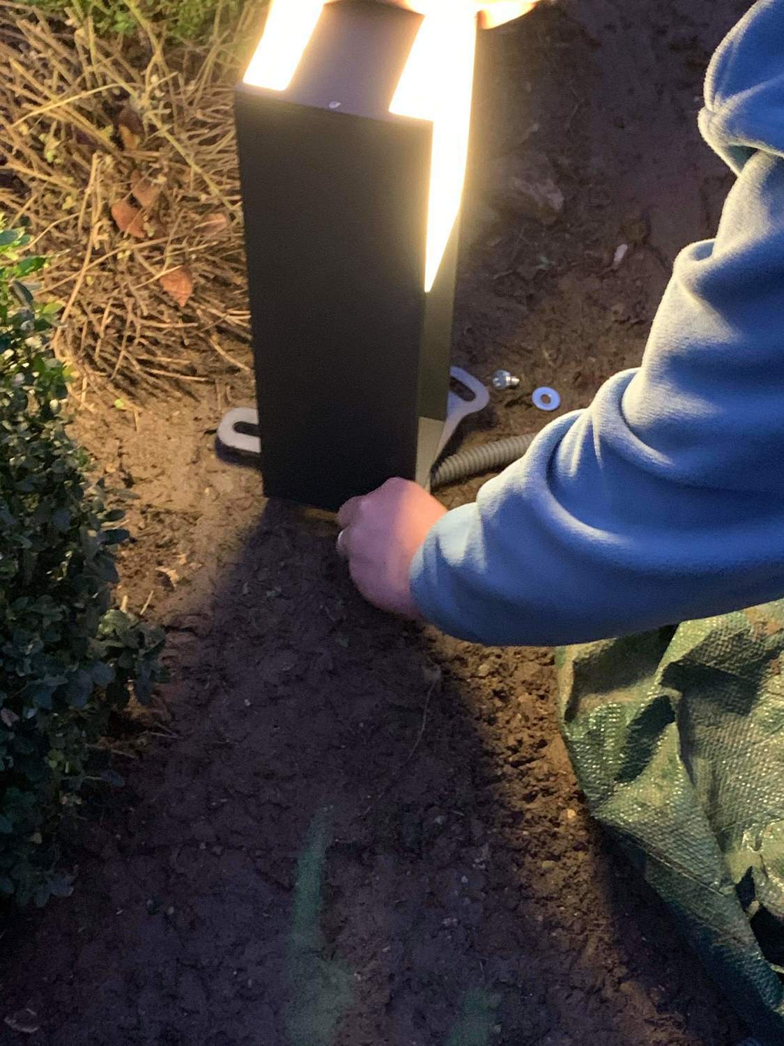 - Taking exterior light with the base-plate attached place over installed anchor and secure ground anchor three M10 bolts provided