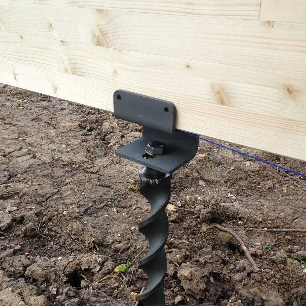 The SA342 bracket has 3 holes which you simply fix to the corners of your wooden building once you have driven the anchor down into position. These are impact in anchors so they are driven into position and NOT screwed in, they drive down through the soil on their own helix.