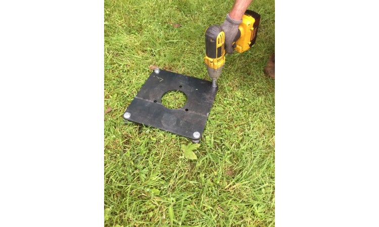 Fix baseplates to Spirafix Ground Anchors (attach blue lights accordingly).