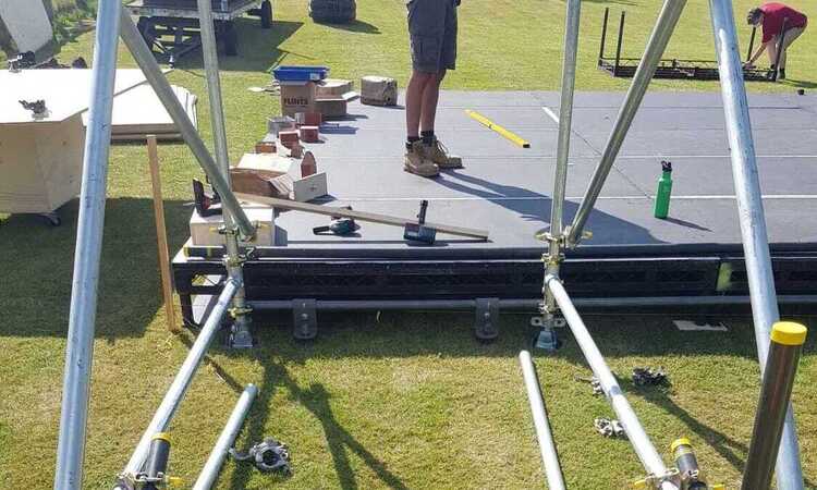 Initial brief was to install anchors for the outdoor staging structure with the aim to provide a counter balance for the the stage to be secure in a variant of weather conditions.