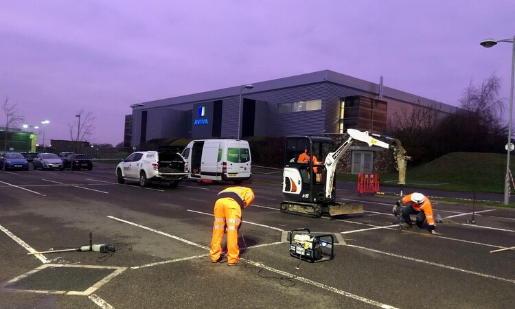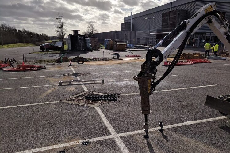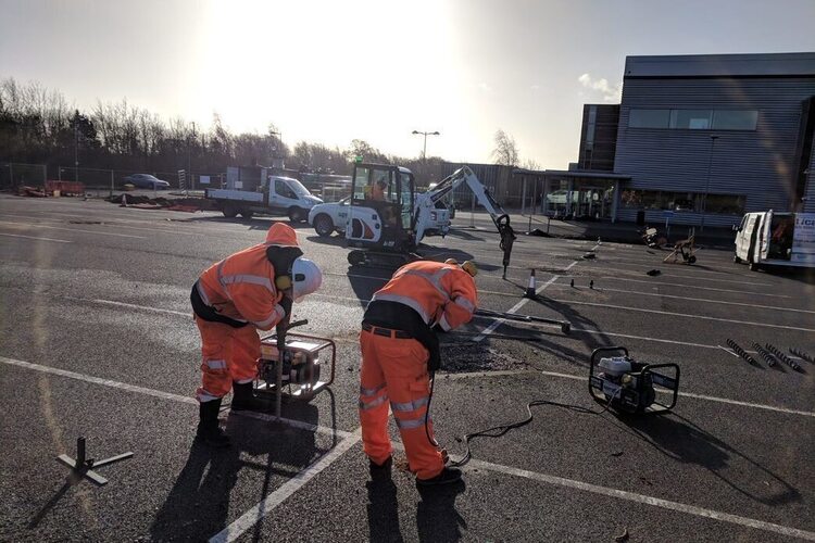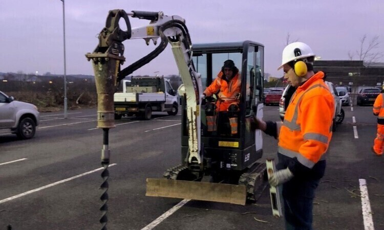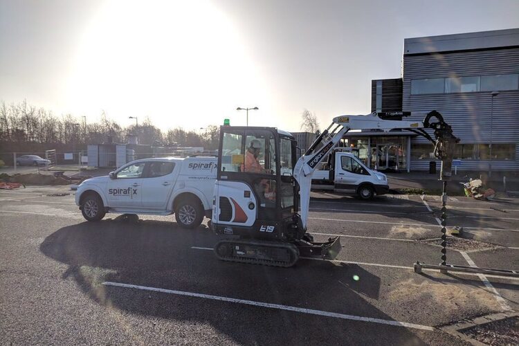 After being contacted by RenEnergy, Spirafix were requested to conduct on-site load testing at the Norwich Aviva site to establish anchor sizes required for solar carport foundations.