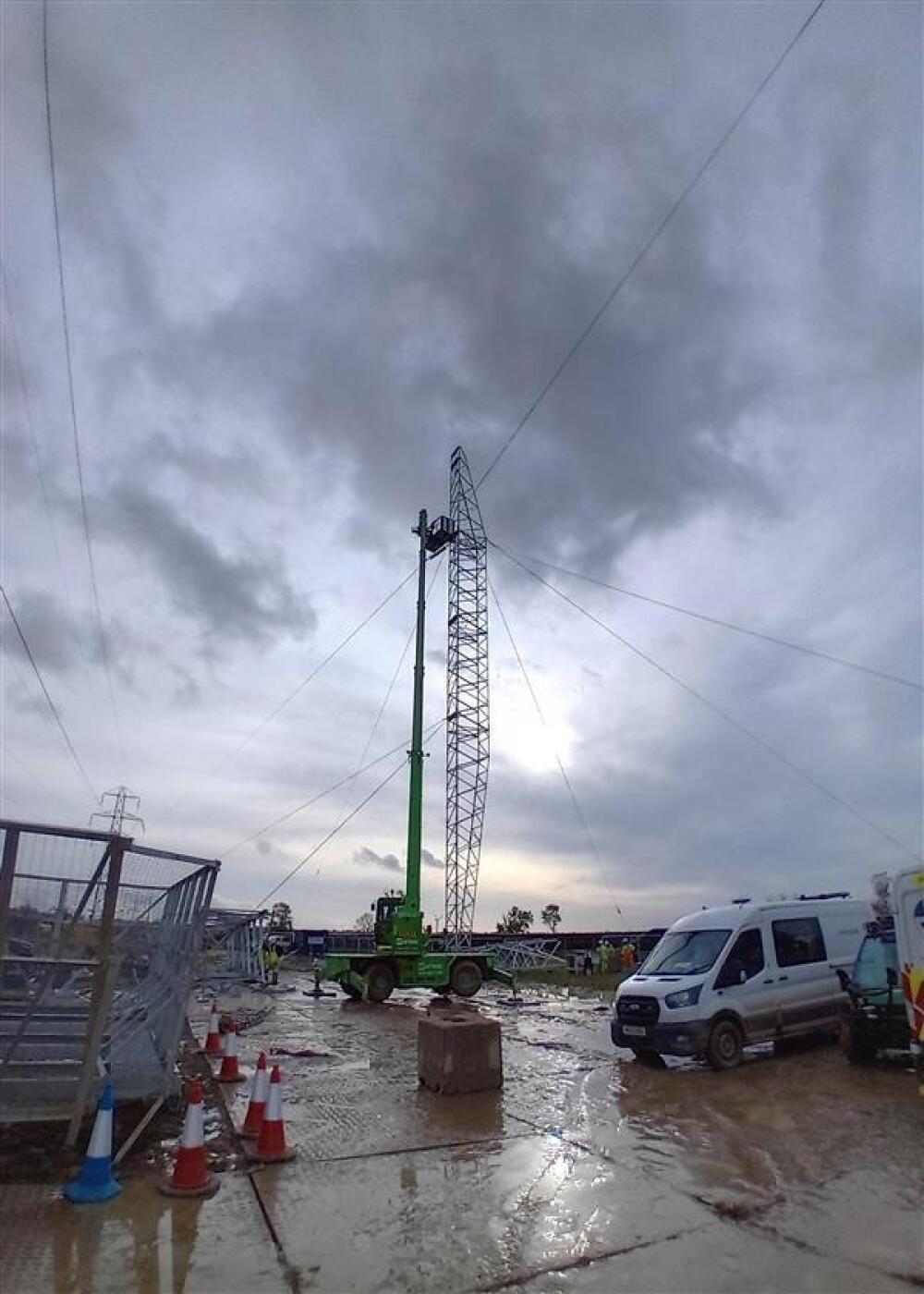 Omexom has utilised the Spirafix ground anchor system in various repair and replacement projects for overhead powerlines. Recently, we were approached to carry out an anchor installation for a temporary tower, as shown in the picture. To complete this task, we utilised the customers stock of 75MM anchors and installed them at a 35-degree angle in predetermined and marked positions. We conducted load testing on each set of anchors to ensure they met the minimum factored loadings. Once verified, multiple anchors, locking hubs/pins, and collared eyebolts were installed at each anchoring location. This allowed Omexom to establish a connection point to the catenary lines, linking the towers and securing the load with ground anchors.