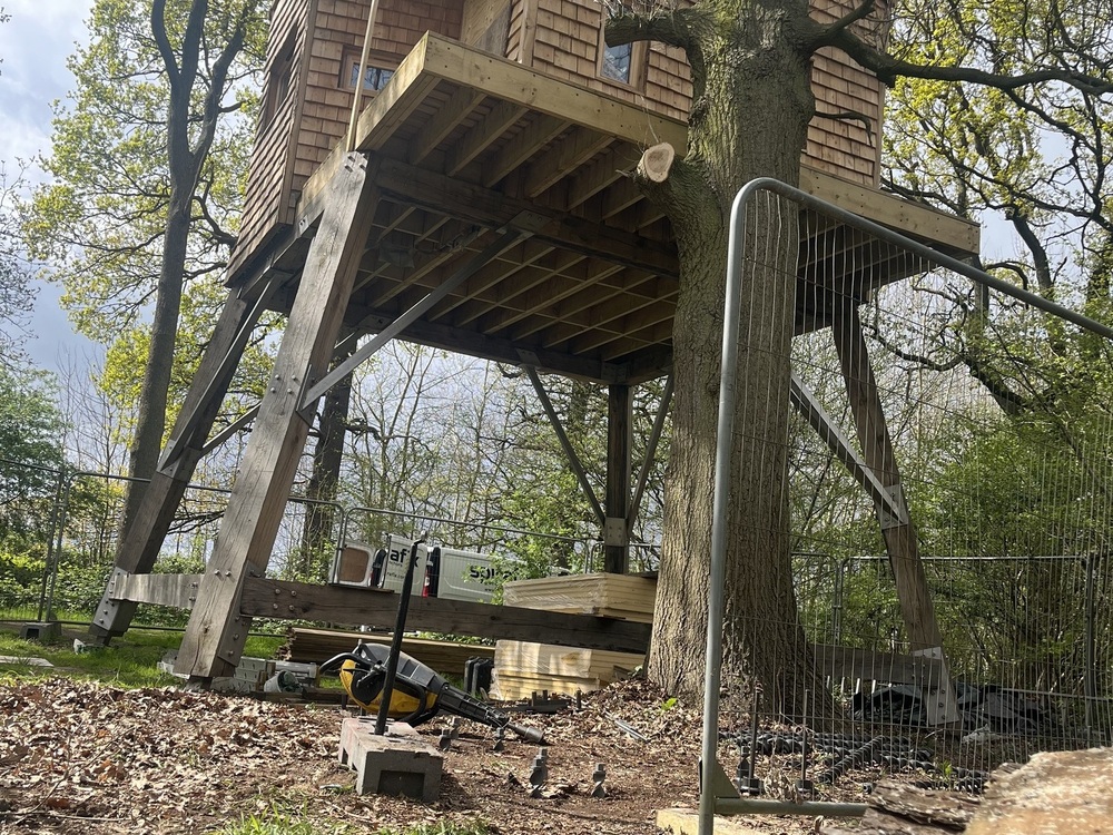 The purpose of this installation is to ensure the stability and security of the newly constructed tree house at Hill Holt Wood. Initial works were started in 2022 which consisted of installing 16 x SF75-12-1760AC anchors and was for securing the main structure of the treehouse. Further works were commissioned by Ermine Engineering in 2024 too install 18 x SF50-10-1260AC anchors to secure a custom-built staircase that wraps around the tree and is fixed to the tree house.